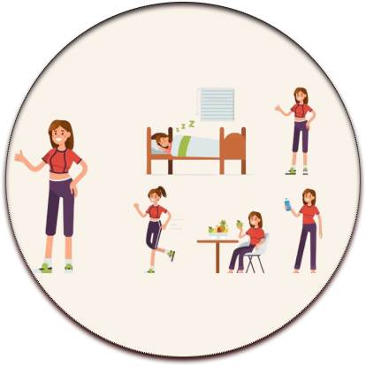 Daily exercise, Eat healthy, Manage stress, and Sleep for 7 to 8 hours daily.